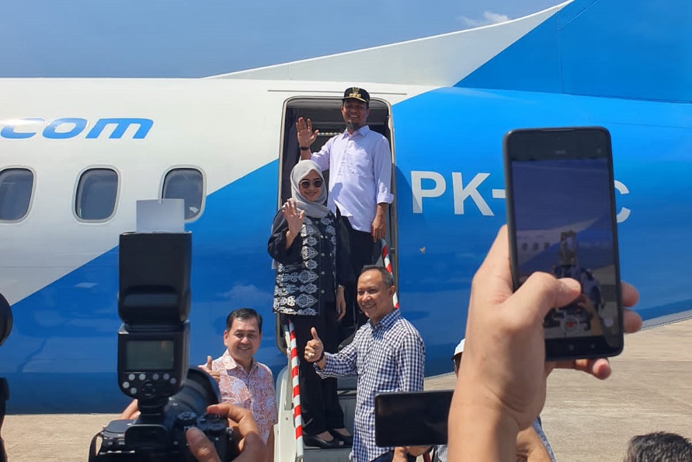 Pesawat ATR Fly Jaya Resmi Mendarat Perdana di Bandara Arung Palakka Bone